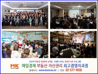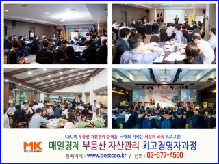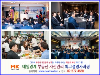 매일경제 부동산 자산관리 최고경영자과정은 중소기업 CEO와 임직원을 대상으로 하는 CEO 교육과정이다. 수강생들은 대부분 일반 기업체 CEO가 60%, 부동산 관련업종이 30%, 부동산에 관심 있는 일반인 10% 비율로 지원하고 하고 있…